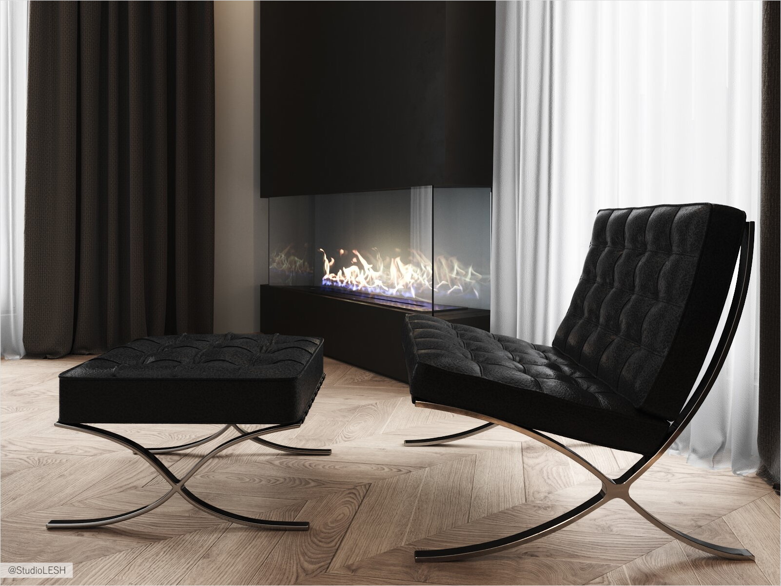 Also in the bedroom there is a biofireplace, which was sewn into a drywall box and highlighted in contrasting brown.