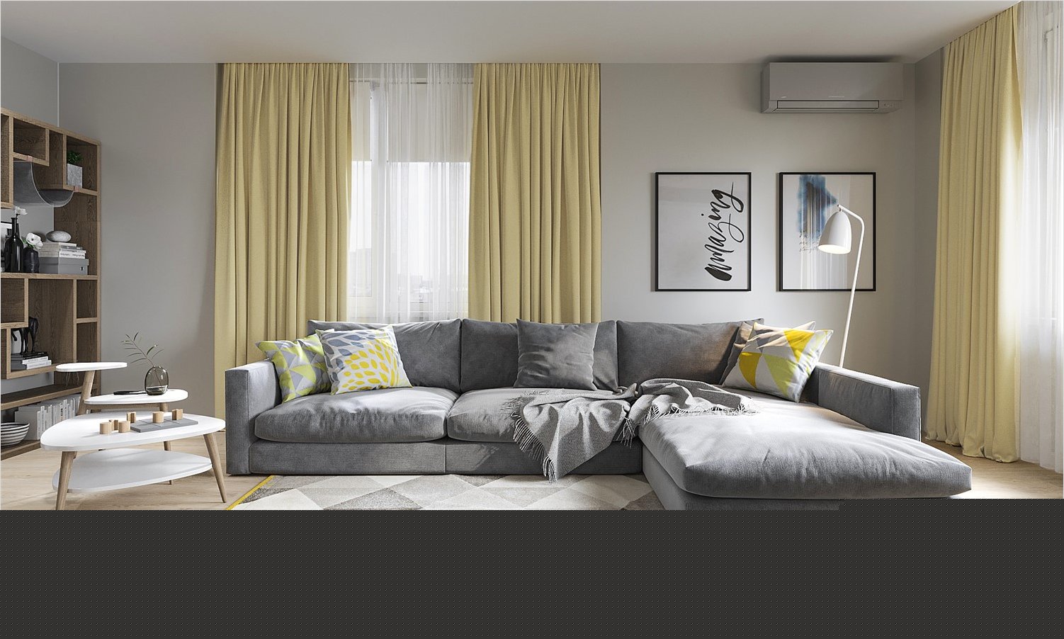 Please note that in the colour solutions of the apartment are used not only neutral tints, but there are also quite bright and at the same time muted blue and yellow colours to revive the interior in general.