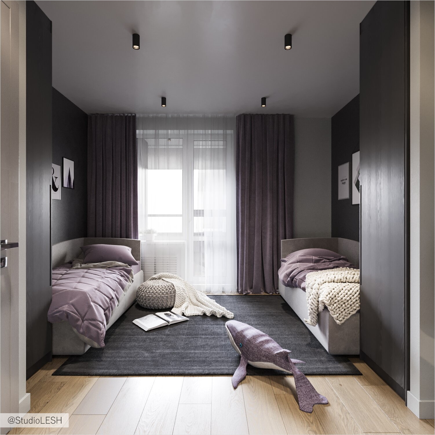 Also we take into account that the children are two girls teenagers, which need their own space, because the room in fact divided in two parts  where each of them has bed, wardrobe and working place. Here in children’s room there is a balcony, that is why there is an opportunity to go to another room when it is necessary.