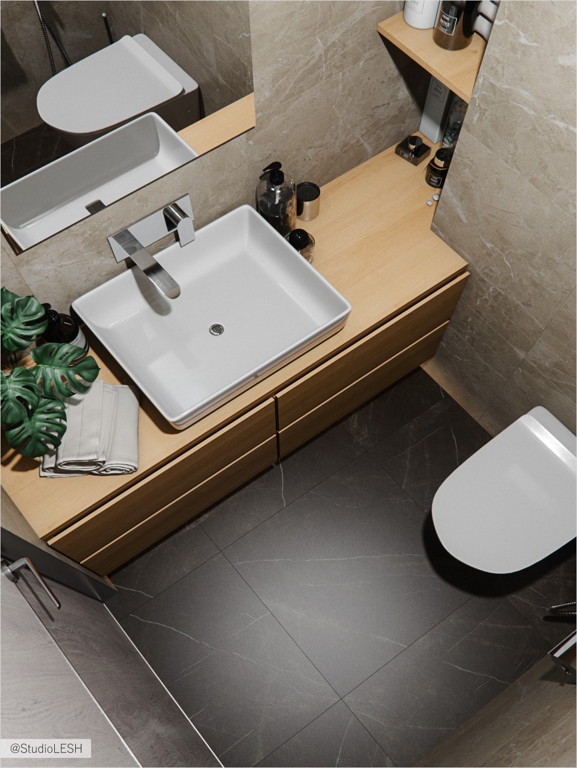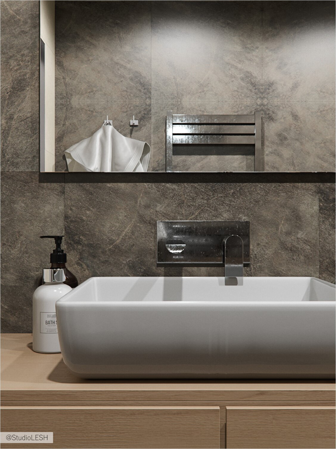 Еще одной интересной деталью в ванной стали смесители, точнее их установка. В реальности мы видим элегантную композицию и при этом не видим самого механизма смешения.